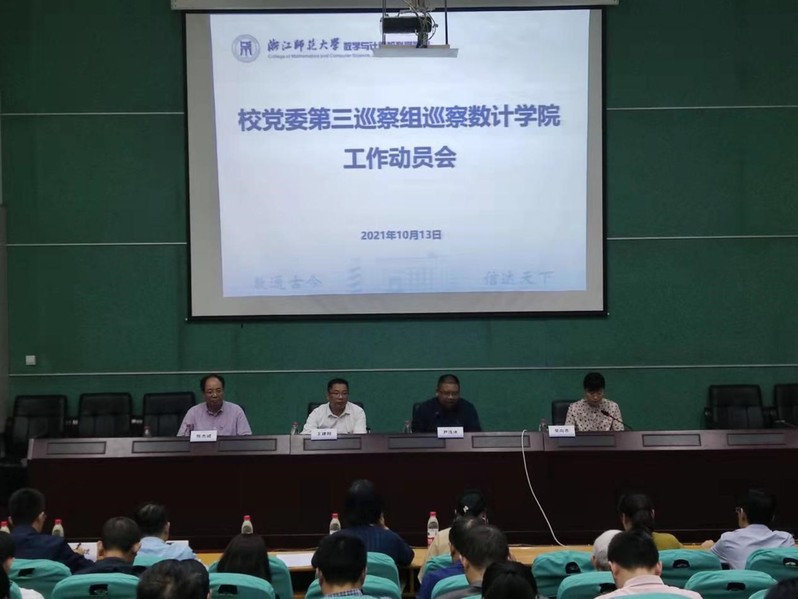 根据学校党委统一部署,10月13日,校党委第三巡察组巡察数计学院党委工作动员会议在数计学院一楼报告厅召开。会前,巡察组组长尹浩冰与学院党委书记吴向齐就做好巡察工作进行了沟通和交流。会上,尹浩冰就即将开展的校内巡察作了动员讲话,吴向齐主持会议并代表学院党委作表态发言。校党委第三巡察组全体成员,学院领导班子成员、全院教职工参加会议。