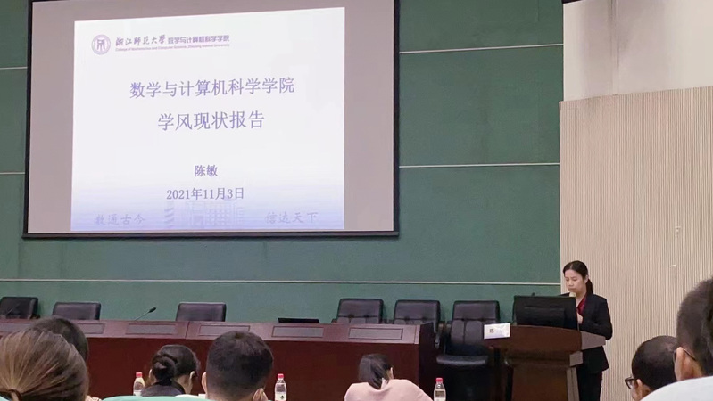 首先,陈敏老师在学院整体情况的介绍中提到了我院数学学科在各大国际著名排行榜上的全新突破,计算机学科也于今年的软科中国最好学科排名中跻身中国一流学科前40%。同时,陈敏老师也对我院近年来创新创业三大赛事的获奖情况、升学深造率、四大学科竞赛获奖情况和研究生论文发表的数量和质量等方面的提升给予了充分肯定;同时,她也明确指出学院当前还存在补考率居高不下、学业预警人数较多、考试作弊情况屡禁不止等问题,希望同学们可以端正学风建设,严肃学习态度。