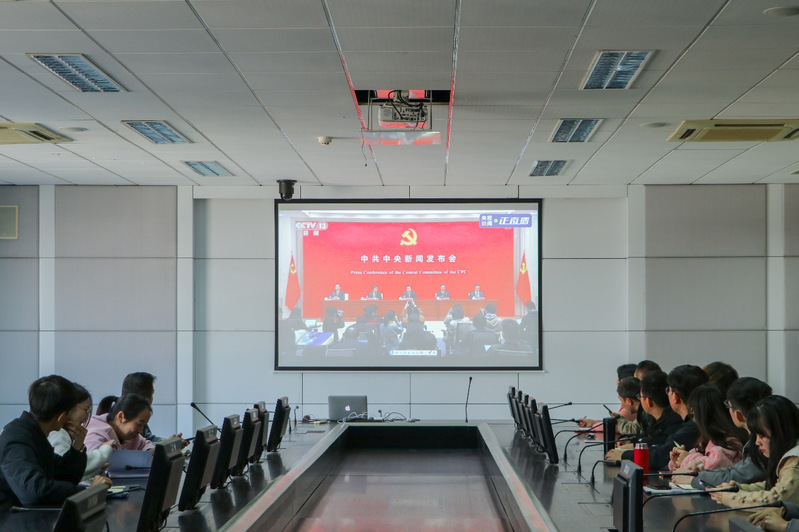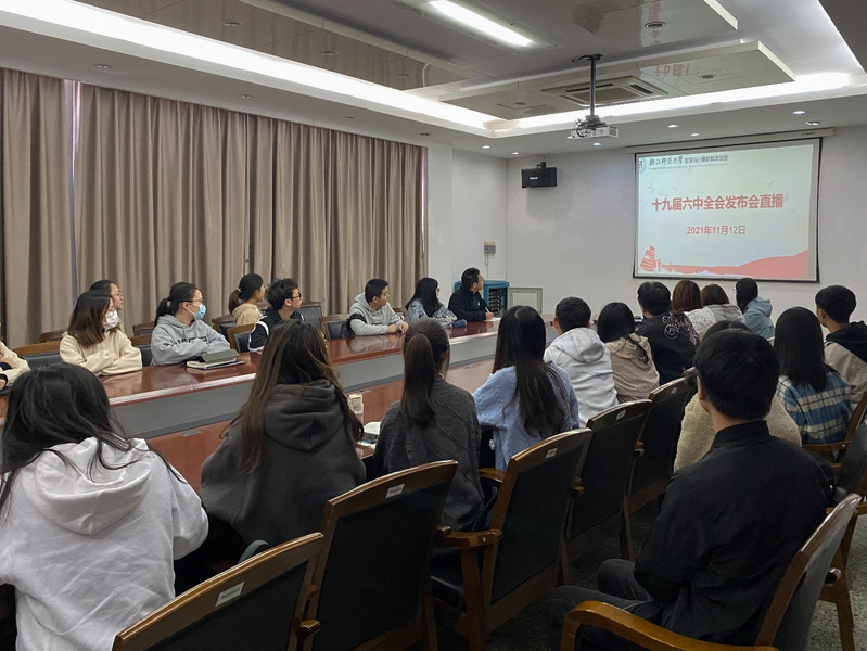 为深入贯彻学习党的十九届六中全会精神,我院设置了三个分会场进行同步直播观看新闻发布会。在观看新闻发布会的过程中,与会党员认真记录会议各项要点。