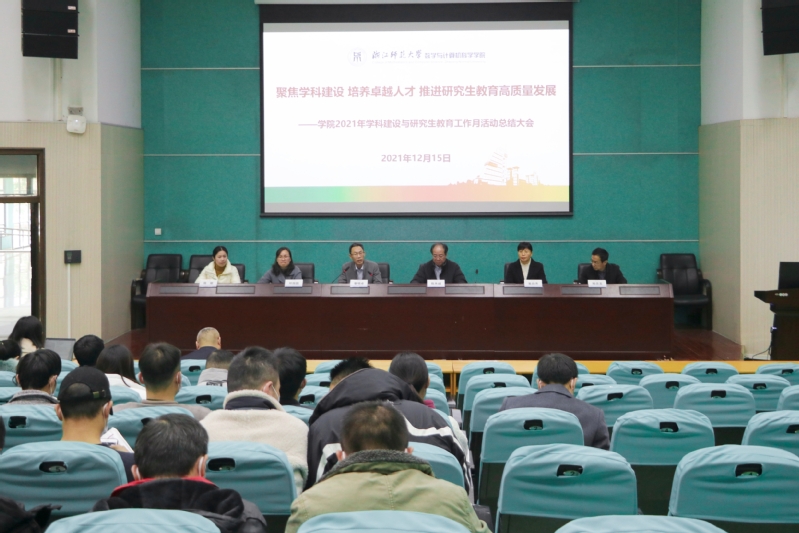 12月15日,我院在学院一楼报告厅举行了学科建设与研究生教育工作月活动总结大会。科研院院长章明卓为总结大会致辞,院长陈杰诚作了大会总结报告,学院领导班子和全体教工参加本次总结大会。大会由副院长郑忠龙主持。