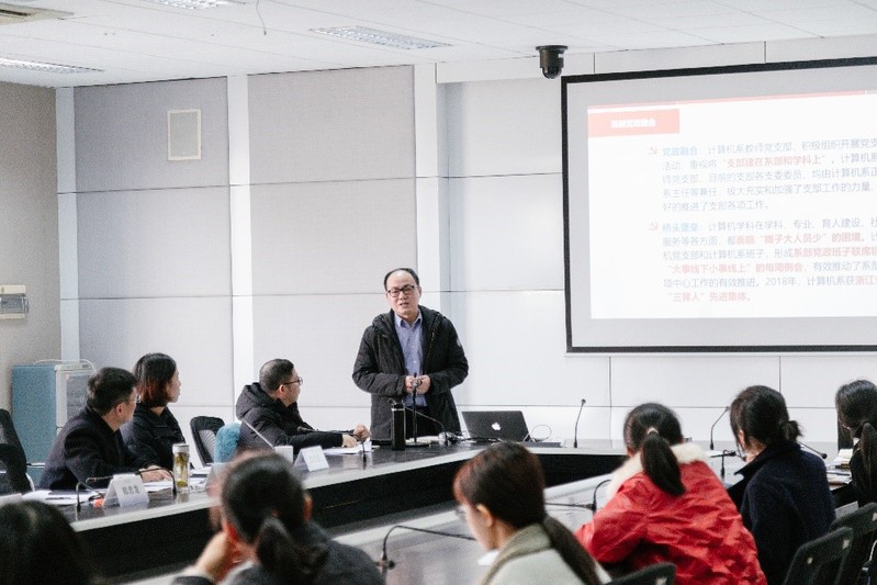 数学系教师党支部、计算机系教师党支部、数学硕士研究生第四党支部三个样板党支部率先进行年度支部工作的回顾与总结。而后其他各支部对2021年度支部工作依次向学院党委进行述职。